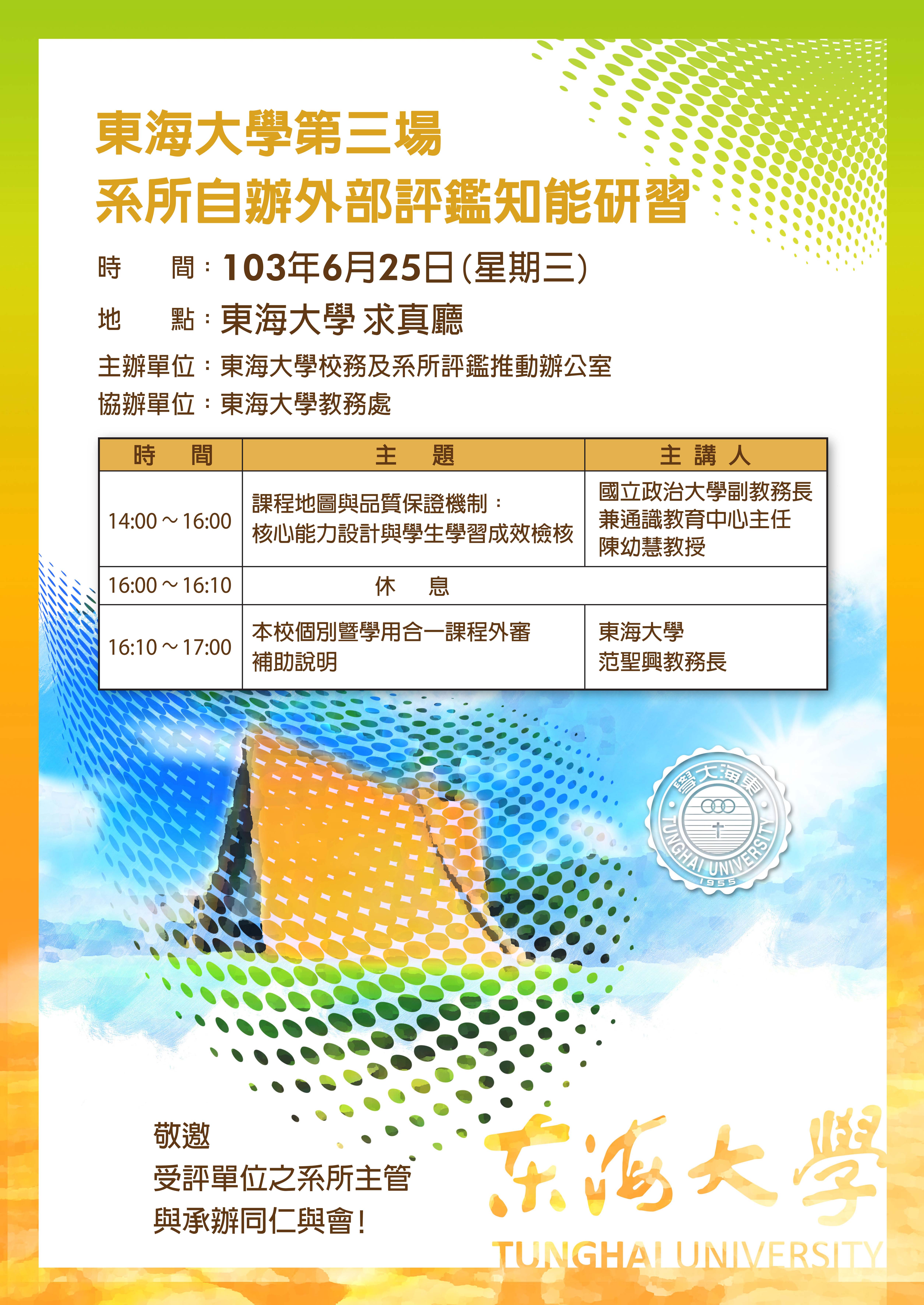 103年6月25日第三場東海大學系所暨通識教育自辦外部評鑑知能研習